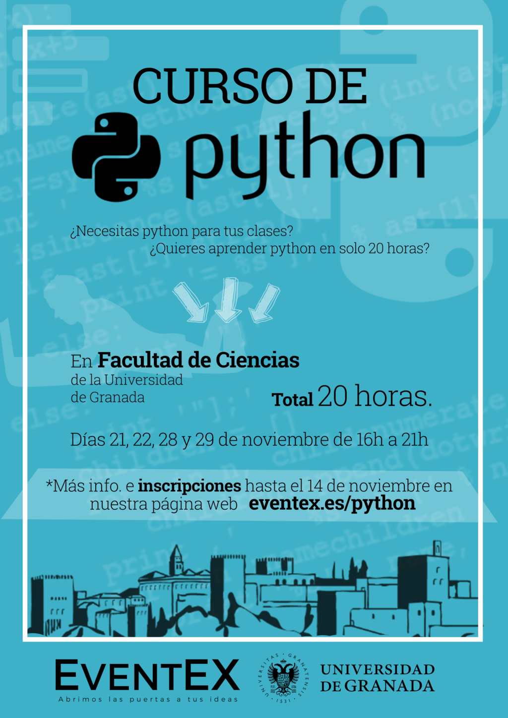Curso de introducción al mundo de la programación usando el lenguaje Python. Python es un lenguaje potente, rápido y sencillo de aprender que permite crear todo tipo de aplicaciones. En los últimos años el lenguaje se ha hecho muy popular gracias a la gran cantidad de librerías que tiene y que ayudan a realizar muchas tareas habituales sin necesidad de tener que programarlas desde cero, a que se puede desarrollar para múltiples plataformas (Linux, MacOS, Windows...) y a que es gratuito.